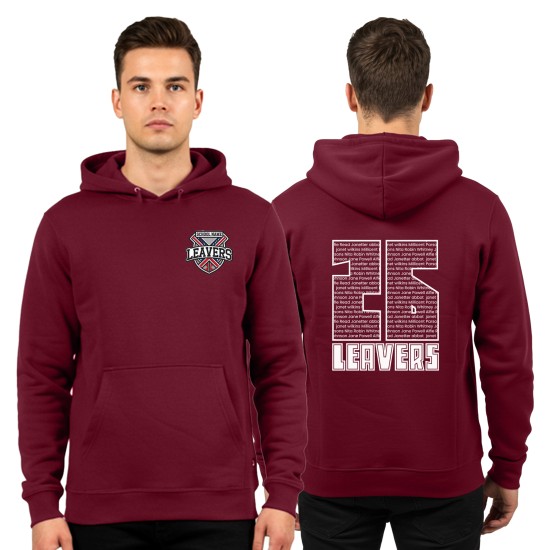 Leavers Personalised Custom Hoodie – Front Embroidered School Logo, "Leavers" & 26 Design in Bold-Style Filled with Student Names on the Back- School Goodbye Customised Hoodie