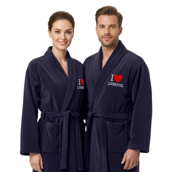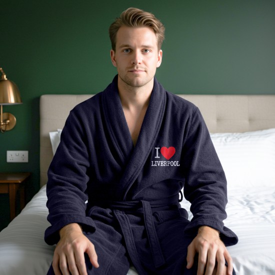 Personalise with your own name, initials, or text beneath the heart design. Each customised embroidered bathrobe is stitched with care for a perfect finish.