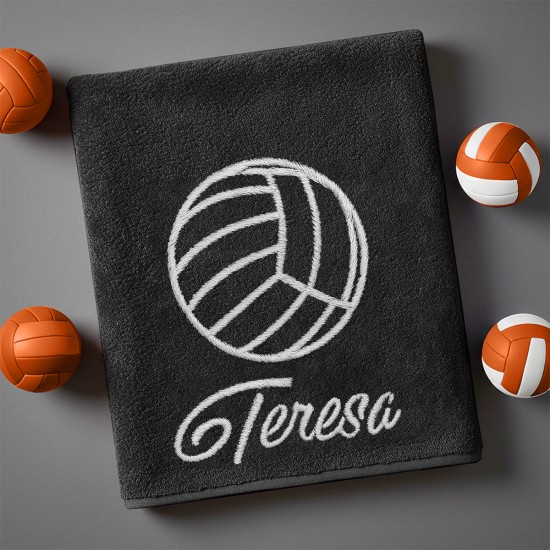 Personalised Volleyball Towel – Customised Embroidery Text or Name – Gift for Bowlers & Volleyball Players – Soft Cotton Sports Towel - Hand Size Towel - 50 x 90 cm