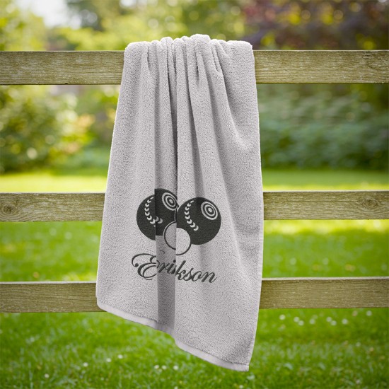 Personalised Embroidered Lawn Bowls Towel – Customised Name & Text – Cotton Sports Towel – Gift for Bowlers