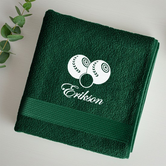 Personalised Embroidered Lawn Bowls Towel – Customised Name & Text – Cotton Sports Towel – Gift for Bowlers  - Hand Size Towel - 50 x 90 cm