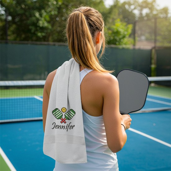 Personalised Embroidered Pickleball Towel – Custom Name Text – Paddle Ball Design – Gift for Pickleball Lovers, Players & Coaches